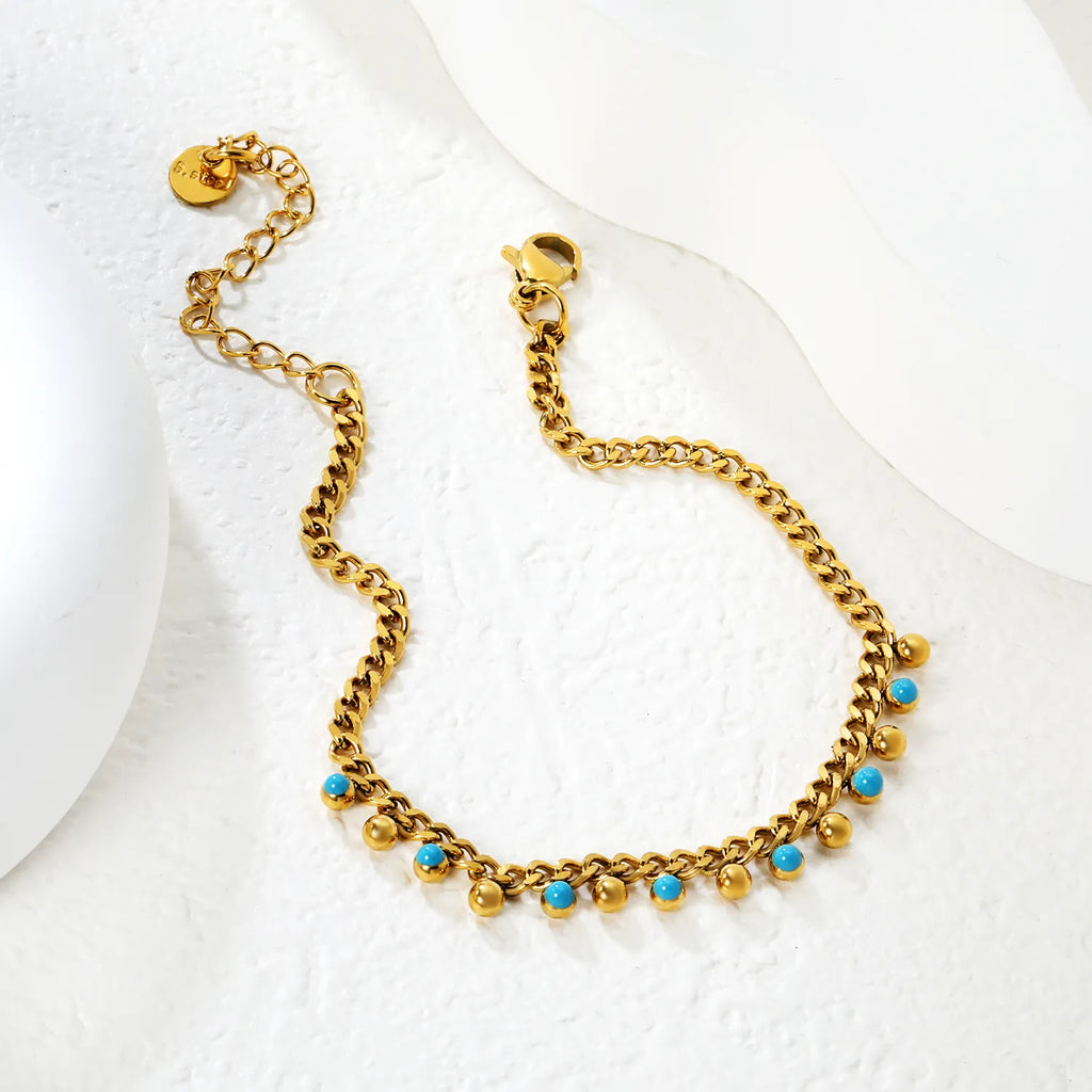 Elevate your everyday style with this striking Blue Drip Bead Bracelet, where fluid artistry meets refined craftsmanship. Each bead features a distinctive drip design that captures light beautifully, while the gold-tone finish adds warmth and sophistication. Crafted from premium stainless steel for lasting durability and resistance to tarnish, this piece transitions seamlessly from casual to formal occasions. The comfortable fit makes it ideal for layering or wearing solo. A versatile essential that brings contemporary edge to any jewelry collection.