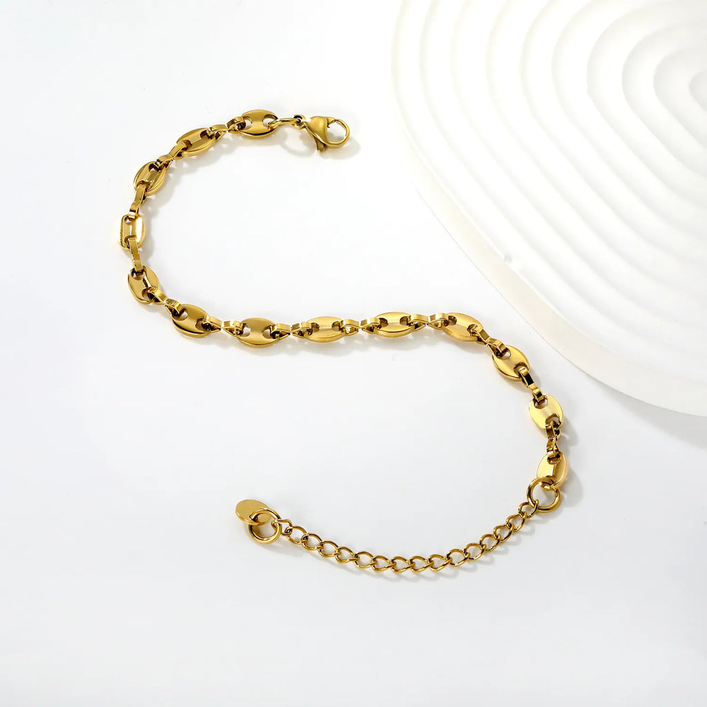 Playful yet refined, this gold pig nose bracelet brings whimsical charm to your jewelry collection. Crafted from durable stainless steel with a polished gold finish, it features a distinctive pig nose design that serves as a conversation starter. Perfect for those who appreciate quirky, statement-making accessories with a touch of luxury. Ideal as a gift for the fashion-forward individual who doesn't take themselves too seriously. Lightweight and comfortable for everyday wear.