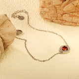 9.6mm round with CNC white zirconium circle + garnet red real zirconium accessories bracelet 17+3cm + 6mm round end plate steel color/golden