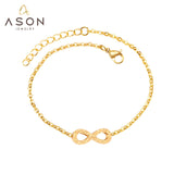 ASON Frosted Lucky Eight Number Shape Loop Link Chain Bracelets Gold Color Stainless Steel for Women Jewelry Extender