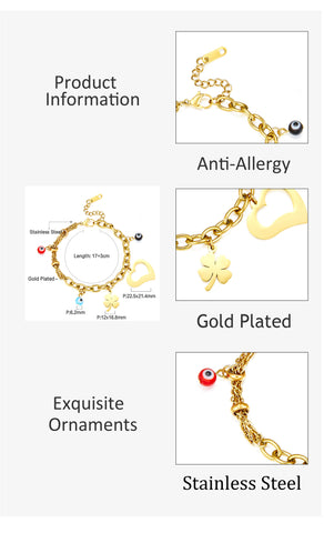 Leaf Grass + Heart-shaped Hollow + 3 Mixed Color Eyeballs Bracelet