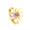 A large chrysanthemum with three leaves set with diamonds ring