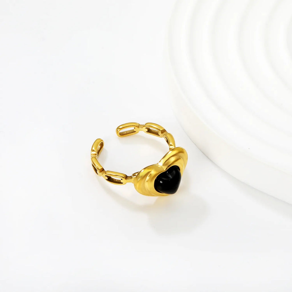Elevate your everyday elegance with this striking heart-shaped black agate stud ring. Crafted in lustrous gold, the 11.5 mm polished agate stone commands attention while maintaining refined sophistication. Black agate is prized for its grounding properties and timeless appeal, making this size 7 ring a versatile addition to any collection. The secure stud setting ensures durability for daily wear, while the warm gold finish complements both warm and cool skin tones. A statement piece that balances boldness with understated luxury.