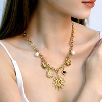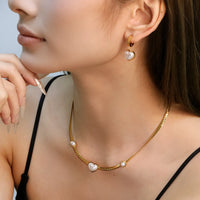 10.7*10mm beaded edge heart-shaped sticky white shell necklace 40+5cm+6mm round plate Gold color