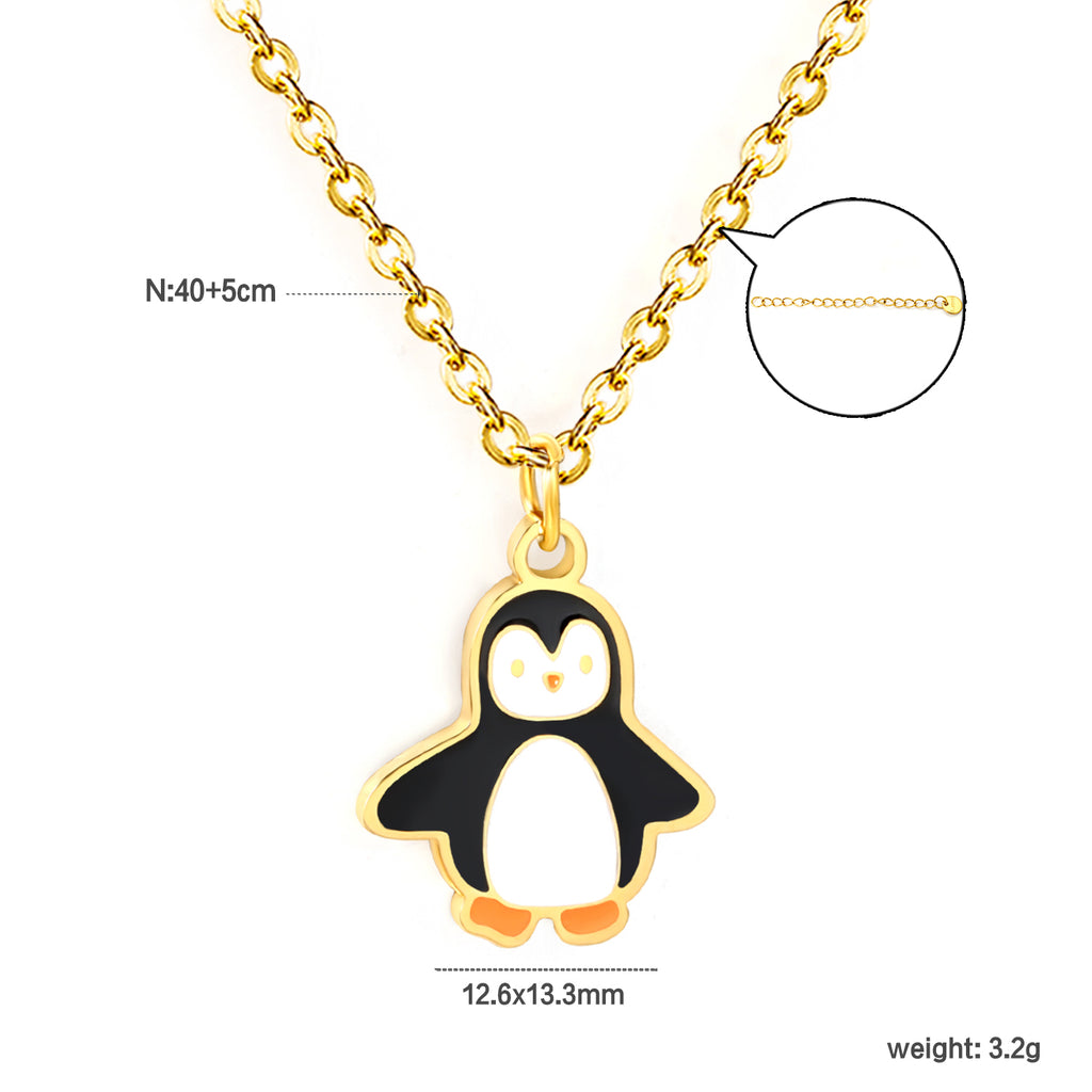 12.6*13.3mm Penguin Pendant 0.4mm Cross Chain Round Tag Necklace Gold