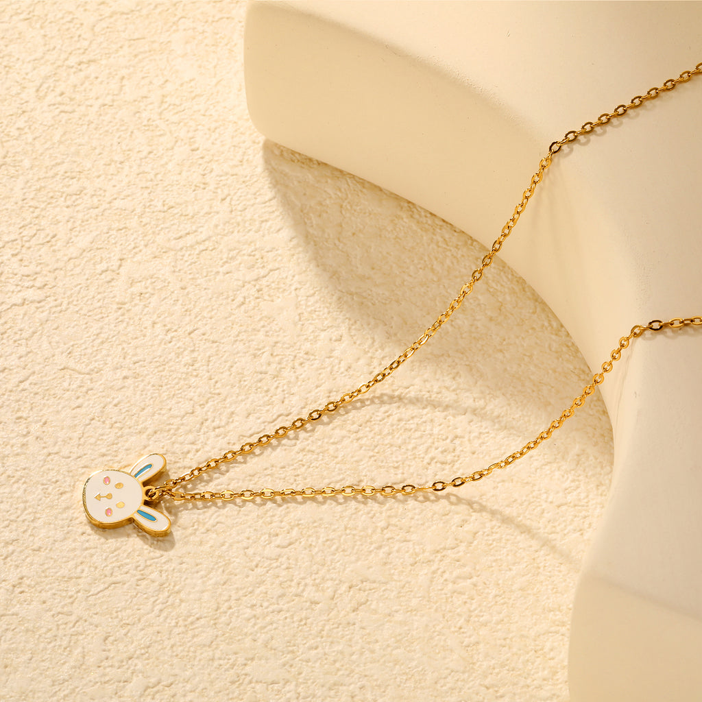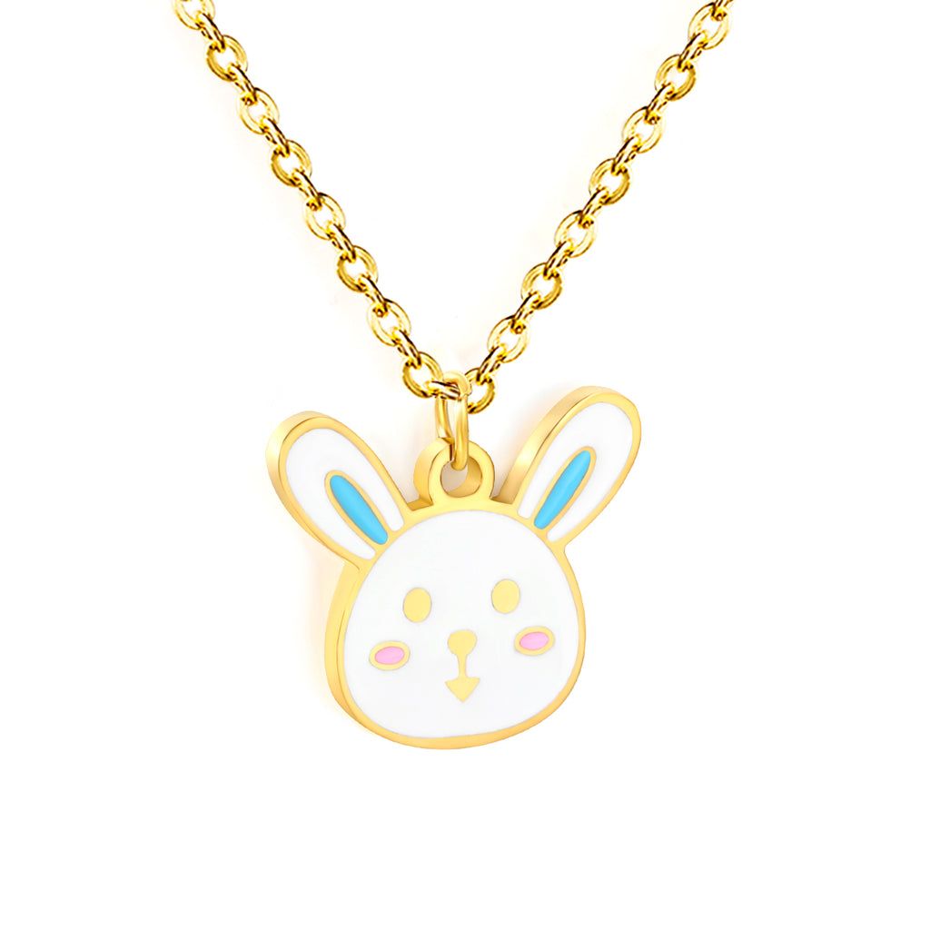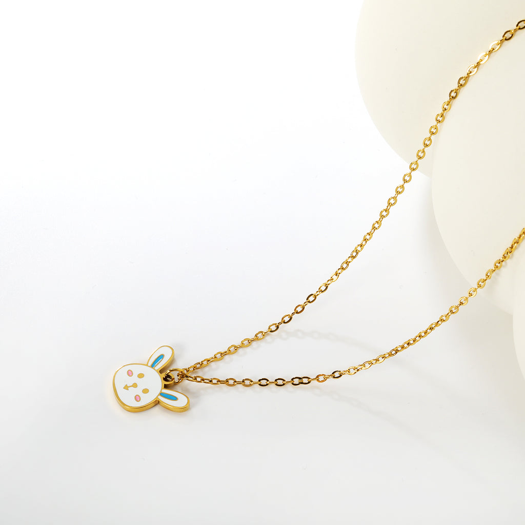 14.7*13.1mm Rabbit Pendant 0.4 Cross Chain Round Tag Necklace Gold