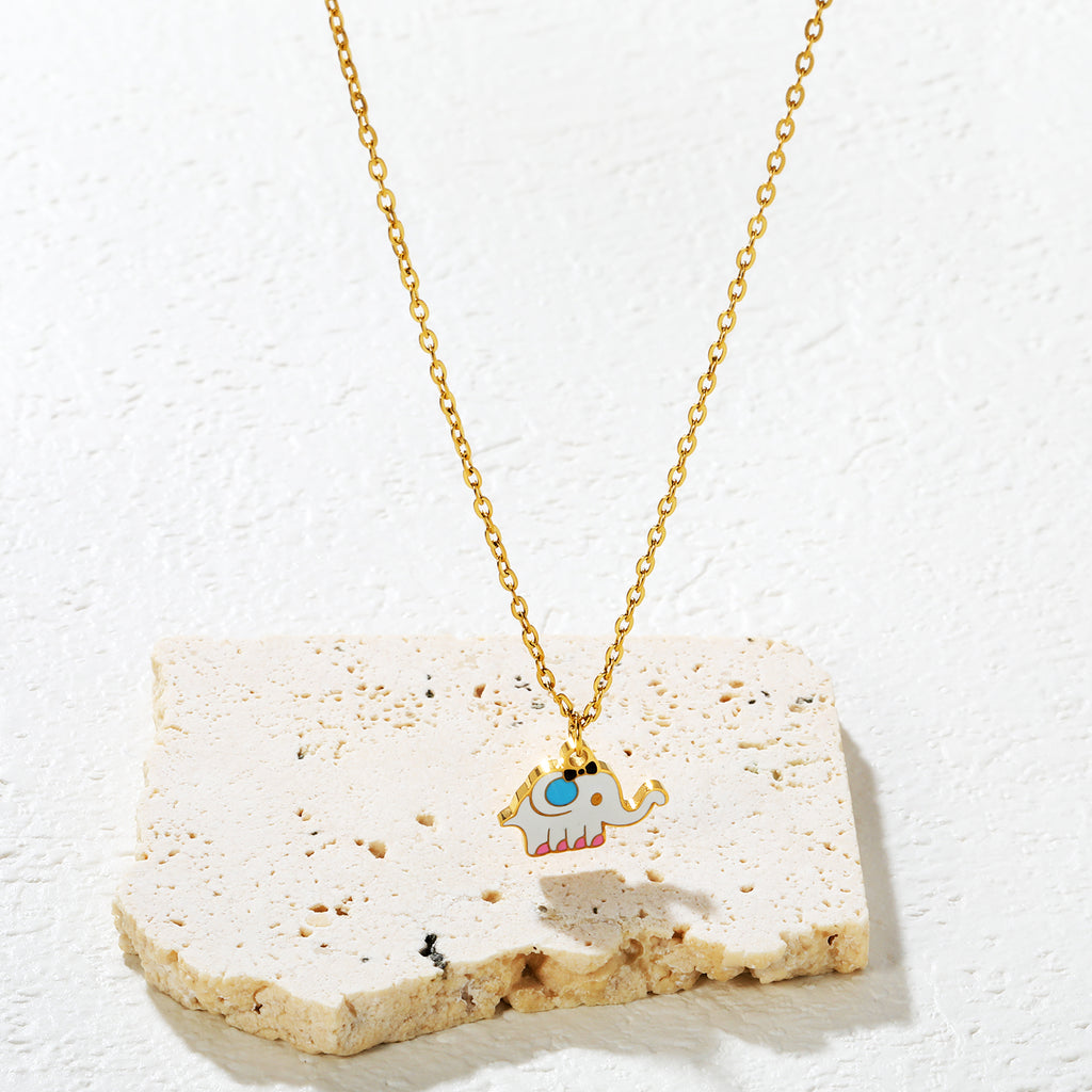 This necklace showcases a finely crafted 15.3x9.5mm elephant pendant symbolizing strength and wisdom. Suspended on a delicate 0.4mm cross chain with a subtle round tag accent, the piece is finished in polished gold for a timeless, elegant appearance. Its refined design makes it a meaningful accessory that combines artistry with everyday wearability.