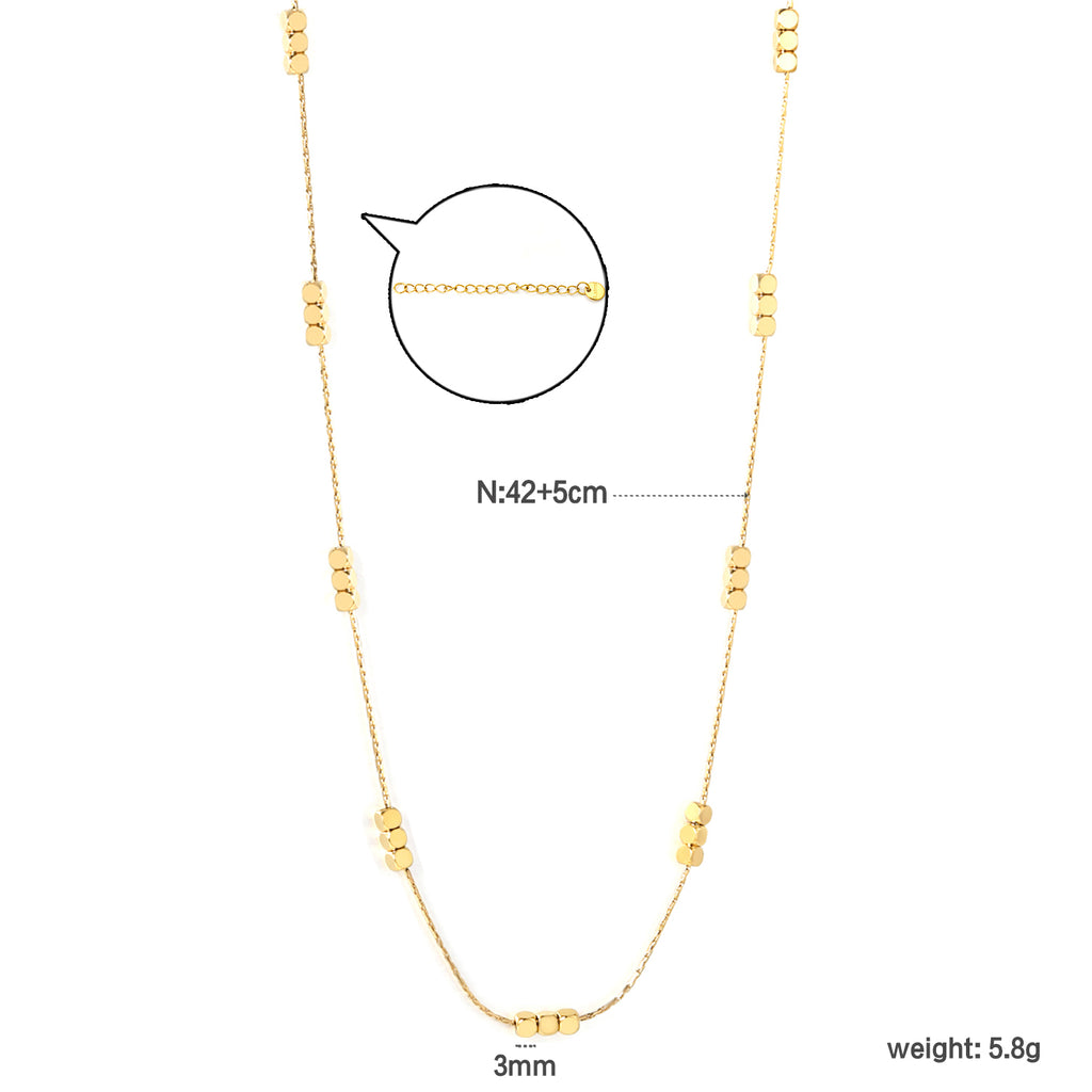 This elegant necklace features 27 chamfered square blocks, each measuring 3mm with a hammered texture that adds subtle depth and catch light beautifully. Crafted in a radiant gold finish, it combines a modern geometric aesthetic with timeless appeal. The distinctive square round tag design offers a refined statement piece suitable for both everyday wear and special occasions, enhancing your style with expert craftsmanship and understated sophistication.