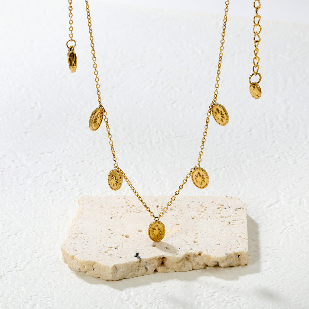 6.2*8.4mm Five-Pointed Star Elliptical Pendant 0.35mm Cross Chain Round Tassel Pendant Necklace Gold