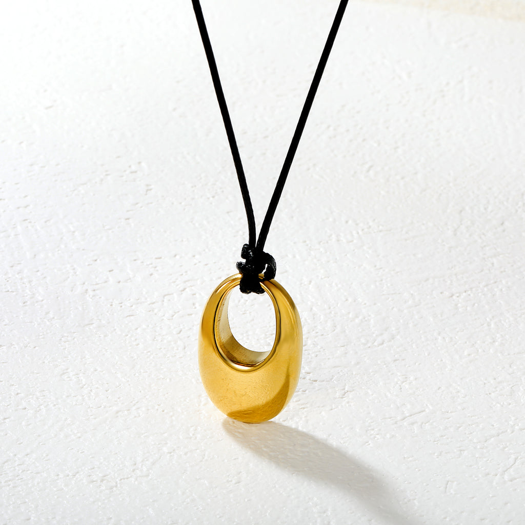 Elevate your style with this Openwork Solid Irregular Oval Pendant Necklace, featuring a refined 2.0mm gold wax cord. The 60cm length offers versatile wear, perfect for layering or as a standalone statement. Crafted with precision, the irregular oval pendant adds a modern, sophisticated touch to any outfit. Durable yet lightweight, this necklace balances elegance with everyday practicality for a timeless accessory.