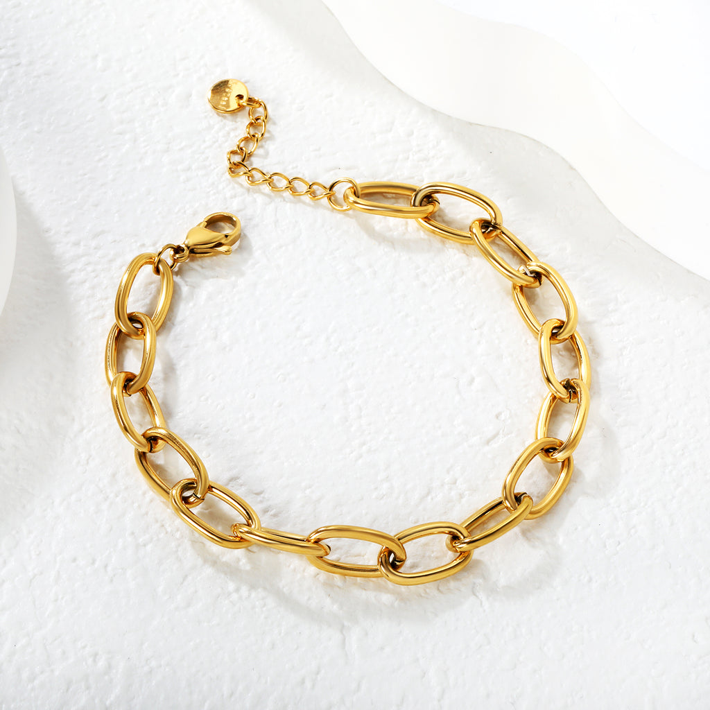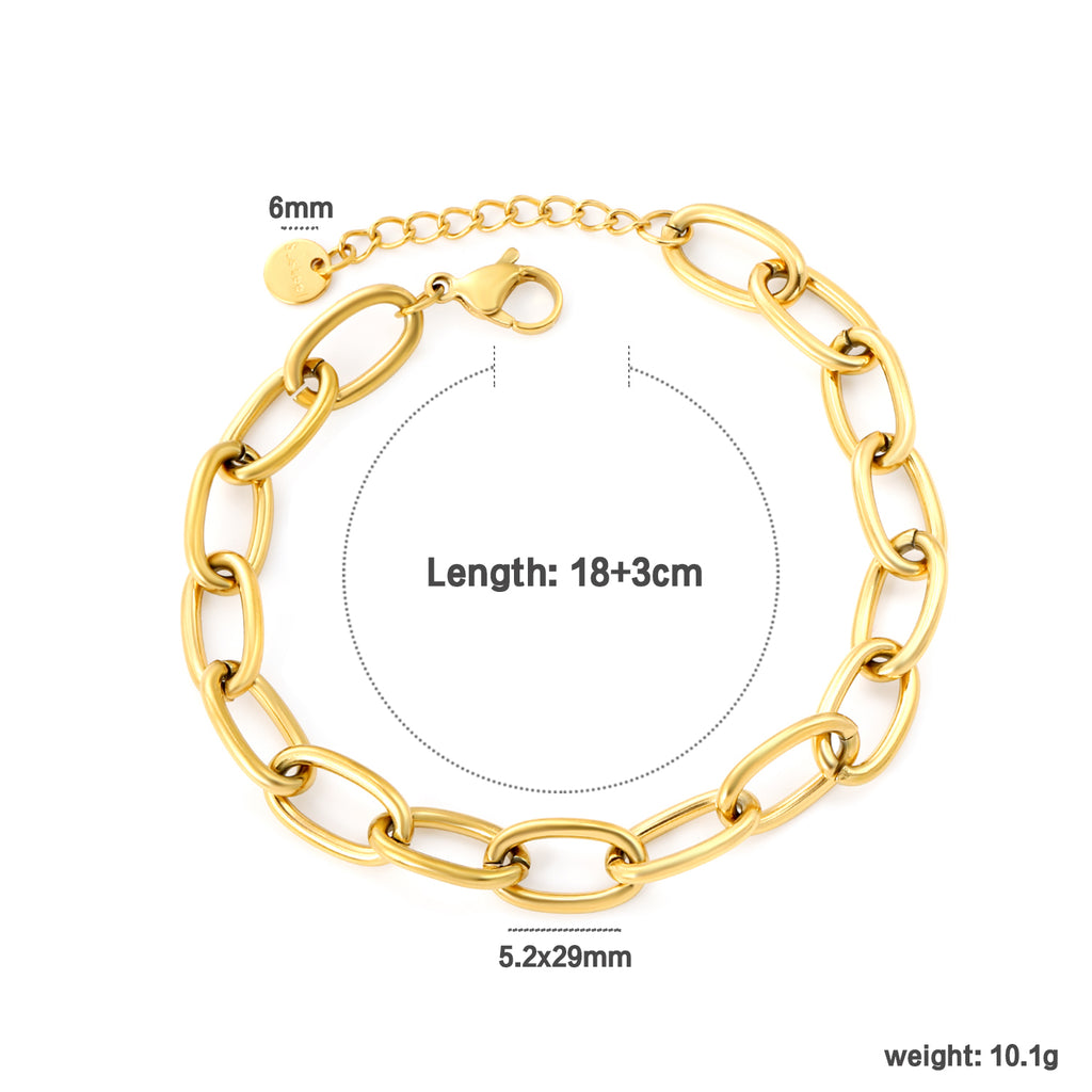 Elevate your wrist with this sophisticated gold bracelet, engineered for refined elegance. Featuring a robust 5.2 × 29mm chain construction with a distinctive cross-link design, this piece combines durability with luxury aesthetics. The adjustable 18cm + 3cm extension accommodates various wrist sizes, while the 6mm round tail closure ensures secure, comfortable wear. Crafted from premium materials, this branded accessory delivers timeless style suitable for both everyday sophistication and special occasions.