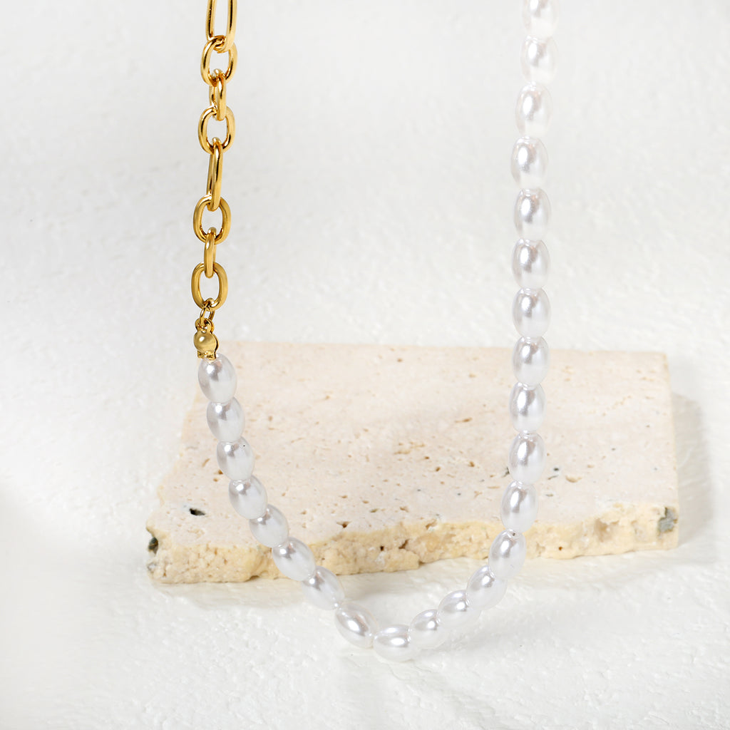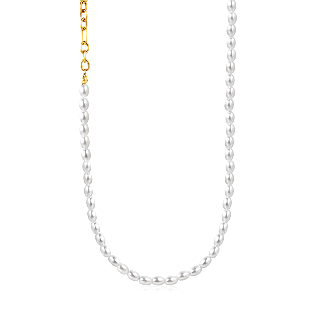 Elevate your everyday style with this sophisticated gold necklace, crafted from premium plastic beads and delicate O-shaped chain links. The triple-stranded design creates dimensional texture and movement, while the extended 42cm length with 5cm adjustable extension ensures a perfect fit for any neckline. Finished with a refined 6mm round tag detail, this versatile piece transitions seamlessly from day to evening wear. Lightweight yet substantial, it's an essential addition to any jewelry collection.
