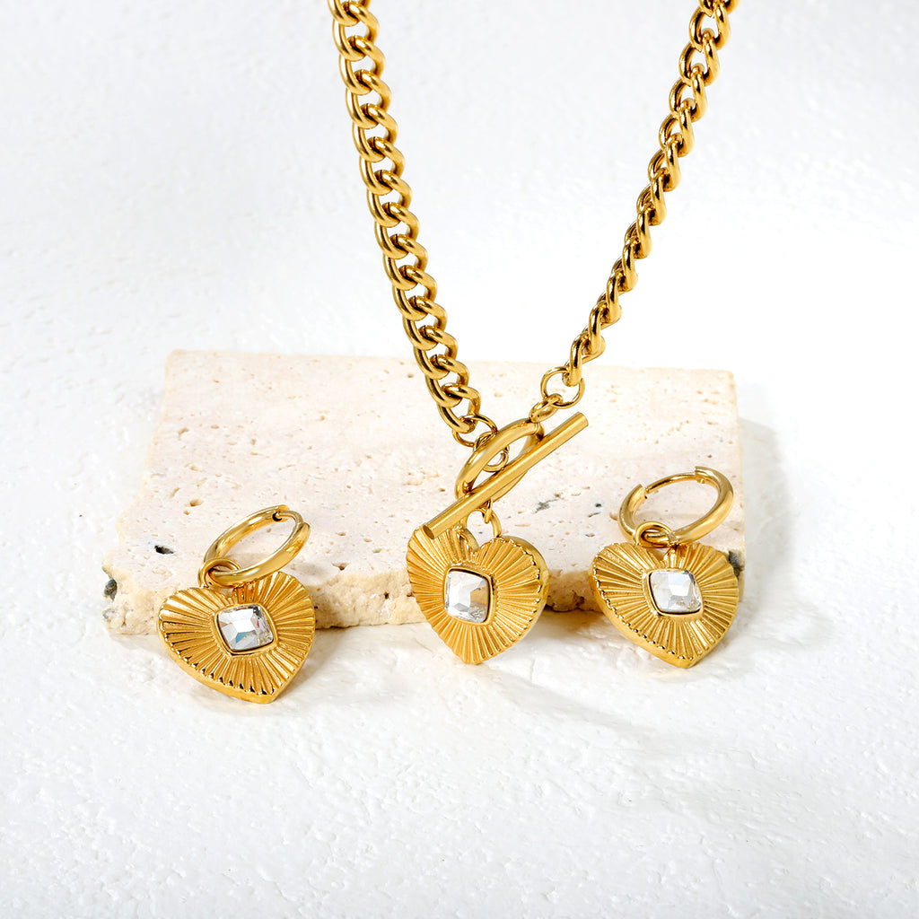 White Diamond Heart Set - Gold Earrings: 2.0*10 heart accessories, 18*16mm Pendant: 18*16mm OT Clasp: 1.4*5, Side Chain: 43cm