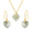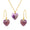 Gray/Purple/Blue Heart Stones Set Gold Earrings:12.2*12.3mm Pendant:12.2*12.3mm 0.3 Cross Chain 40+5cm+6mm Round Plaque
