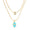 6.7*12.1mm Vertical Eye Drops Light Blue Oil Sticky White Diamond Pendant + 5mm Cylindrical Sticky White Diamond Accessory 0.9 Hammered Square Chain 50+40cm+5cm+6mm Round Plaque Double Chain Necklace GOLDEN