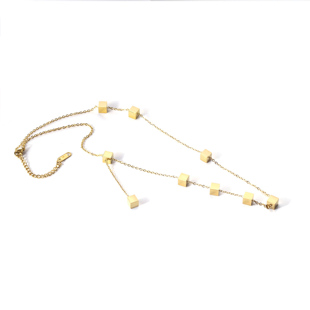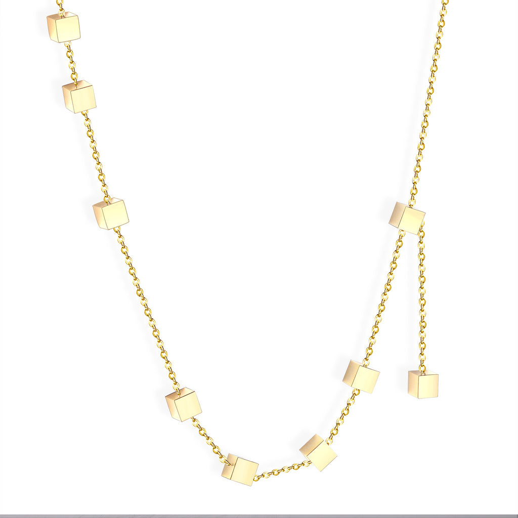 Golden Square Pendant Necklace with Diamonds 14K 45+5cm