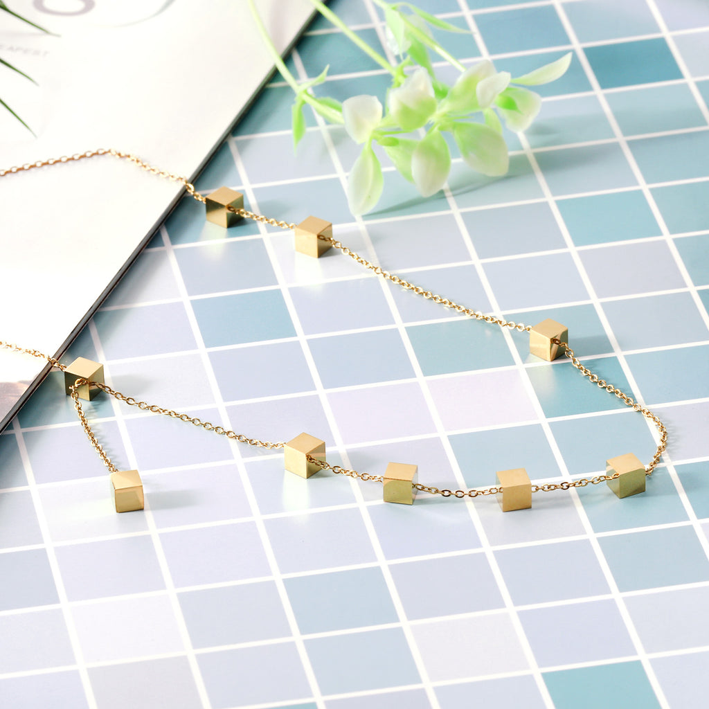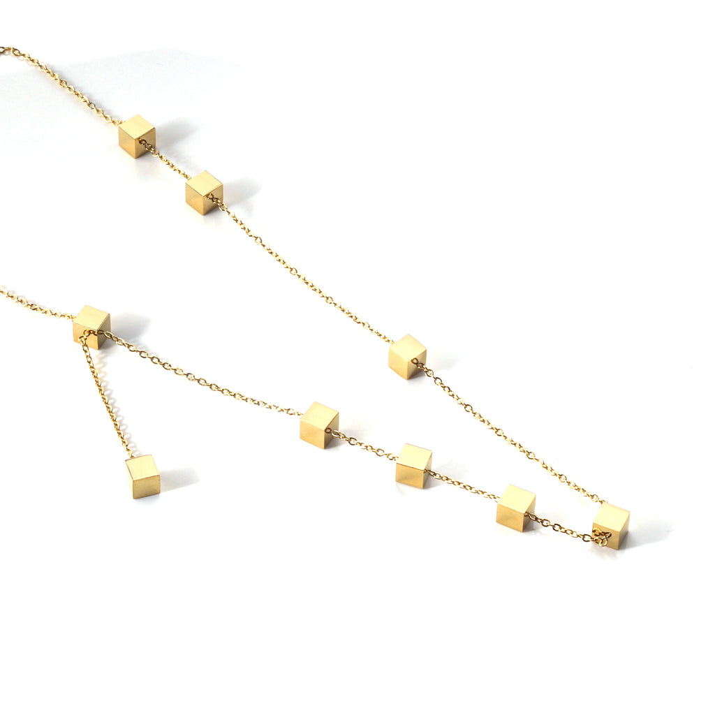 This elegant 14K Golden Square Pendant Necklace features sparkling diamonds and an adjustable 45+5cm chain. Perfect for adding a touch of luxury to any outfit. Indulge in the timeless beauty and sophistication of this stunning necklace. Upgrade your style with this exquisite piece.