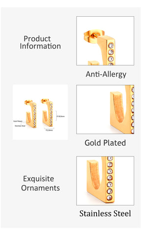 Stainless Steel C-shaped with Diamonds Hoop Earrings