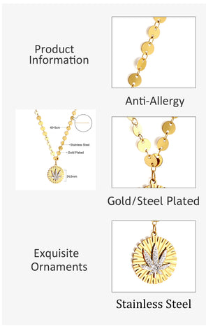 Stainless Steel Round Accessory With White Mud Drill Leaf Necklace
