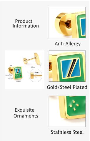 New Fashion Stainless Steel Screw Plug Mixed-color Game Machine Stud Earrings