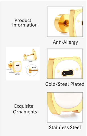 New Fashion Stainless Steel Screw Plug White Pig With Black Nose Stud Earrings