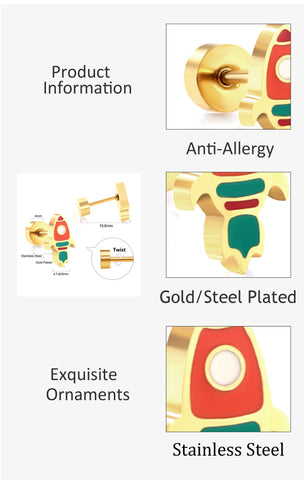 New Fashion Stainless Steel Screw Plug Mixed Color Rocket Stud Earrings