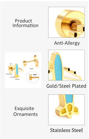 New Fashion Stainless Steel Screw Plug Mixed Color Airliner Stud Earri