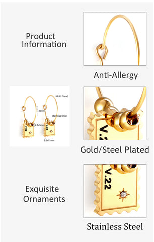 New Stainless Steel Circles With Stamps And Diamonds Earrings