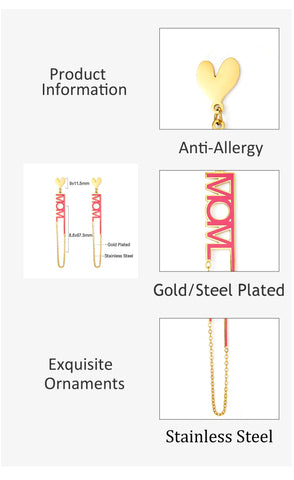 Heart-shaped+MOM Rose Red With Chain Stud Earrings