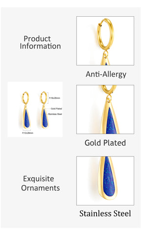 Circle with Water Drops Flash Sand Dark Blue Earrings