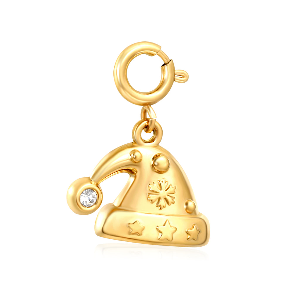 18*11mm Christmas Hat with Rhinestones 7mm Spring Buckle Accessory Gold