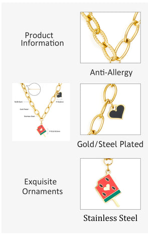 Popsicle Mixed Color With Black Heart-shaped Necklace