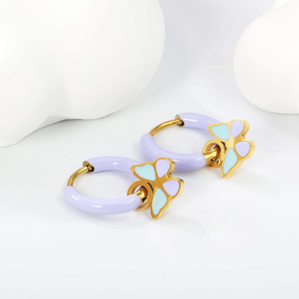 2*10mm circle with purple dripping oil + 9.3*9.5mm butterfly with mixed color dripping oil accessories earrings gold color