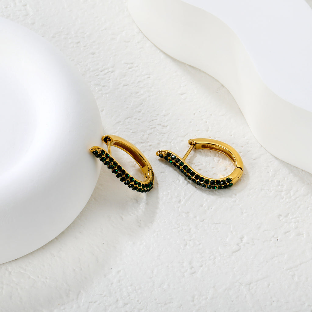 Elevate your collection with these striking geometric emerald earrings, meticulously crafted in gold. Featuring a hollowed-out waterdrop silhouette with precision gemstone faceting, each piece measures 24mm in height with a 17mm outer diameter—a balanced proportion that commands attention without overwhelming the ear. The open-work design creates an interplay of light and shadow, showcasing the rich emerald tones while maintaining an airy, contemporary aesthetic. Perfect for those who appreciate architectural jewelry that transcends seasonal trends.
