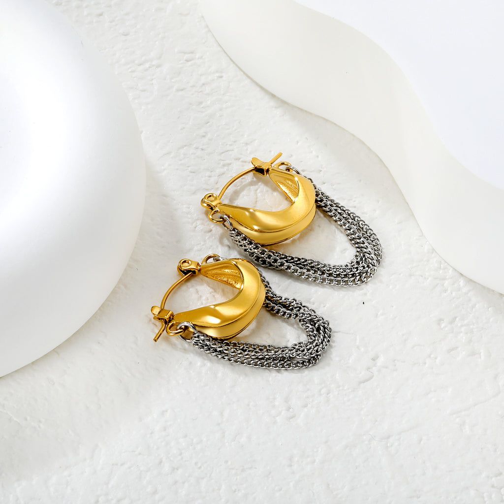 Product Description Elevate your accessory collection with these sophisticated handbag chain tassel earrings, crafted in lustrous intergold. Measuring 6.8×13mm, these petite yet striking pieces feature a delicate chain design paired with graceful tassel detailing, creating movement and dimension with every wear. The intergold finish delivers a refined two-tone aesthetic that complements both warm and cool undertones, making them versatile enough for everyday elegance or special occasions. Lightweight construction ensures all-day comfort, while the premium stainless steel composition guarantees lasting durability and resistance to tarnishing. Perfect for those who appreciate understated luxury with architectural detail.