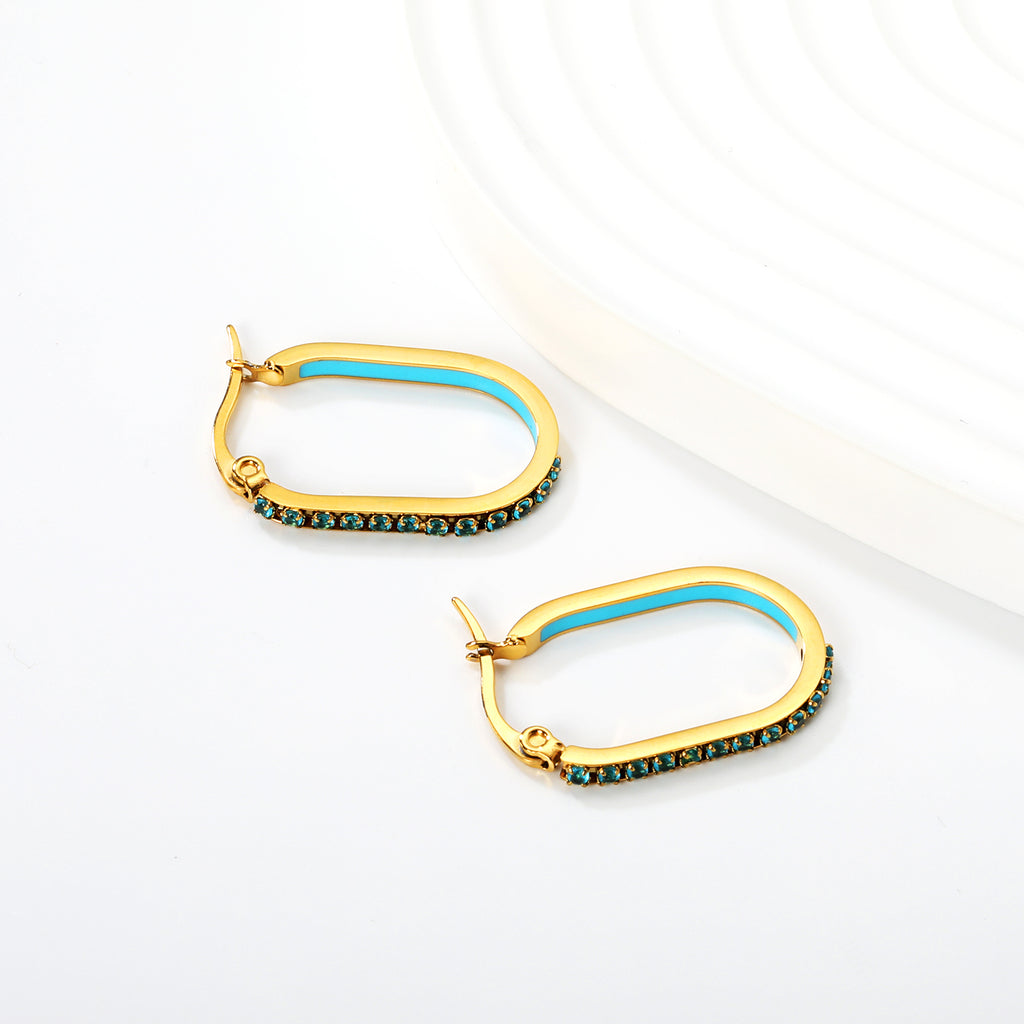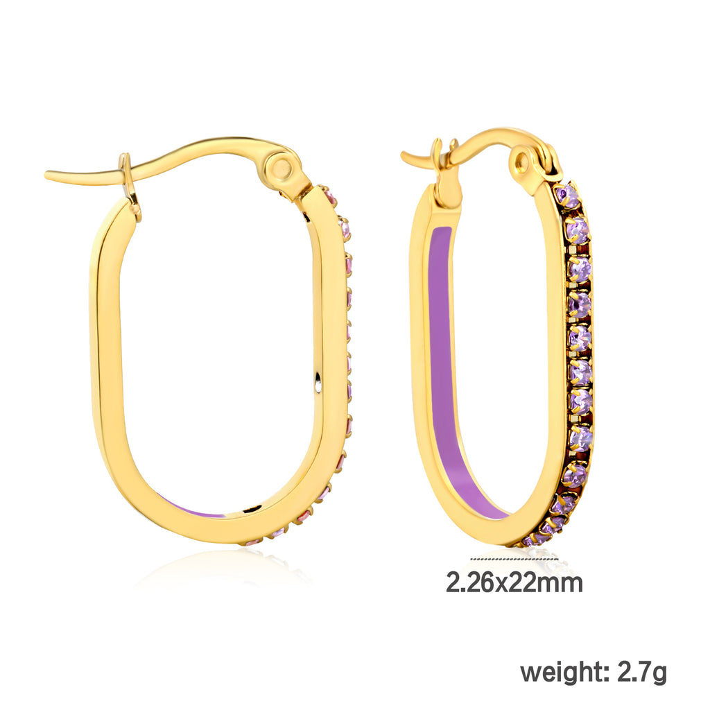2.26 * 22mm oval-shaped geometric band with white/purple/blue/pink/orange diamonds, ear hooks, golden color