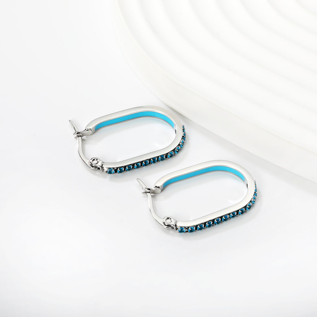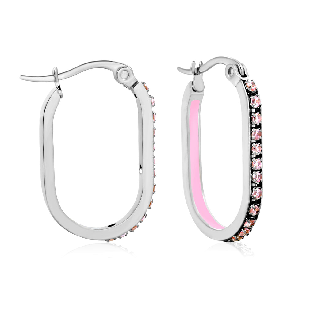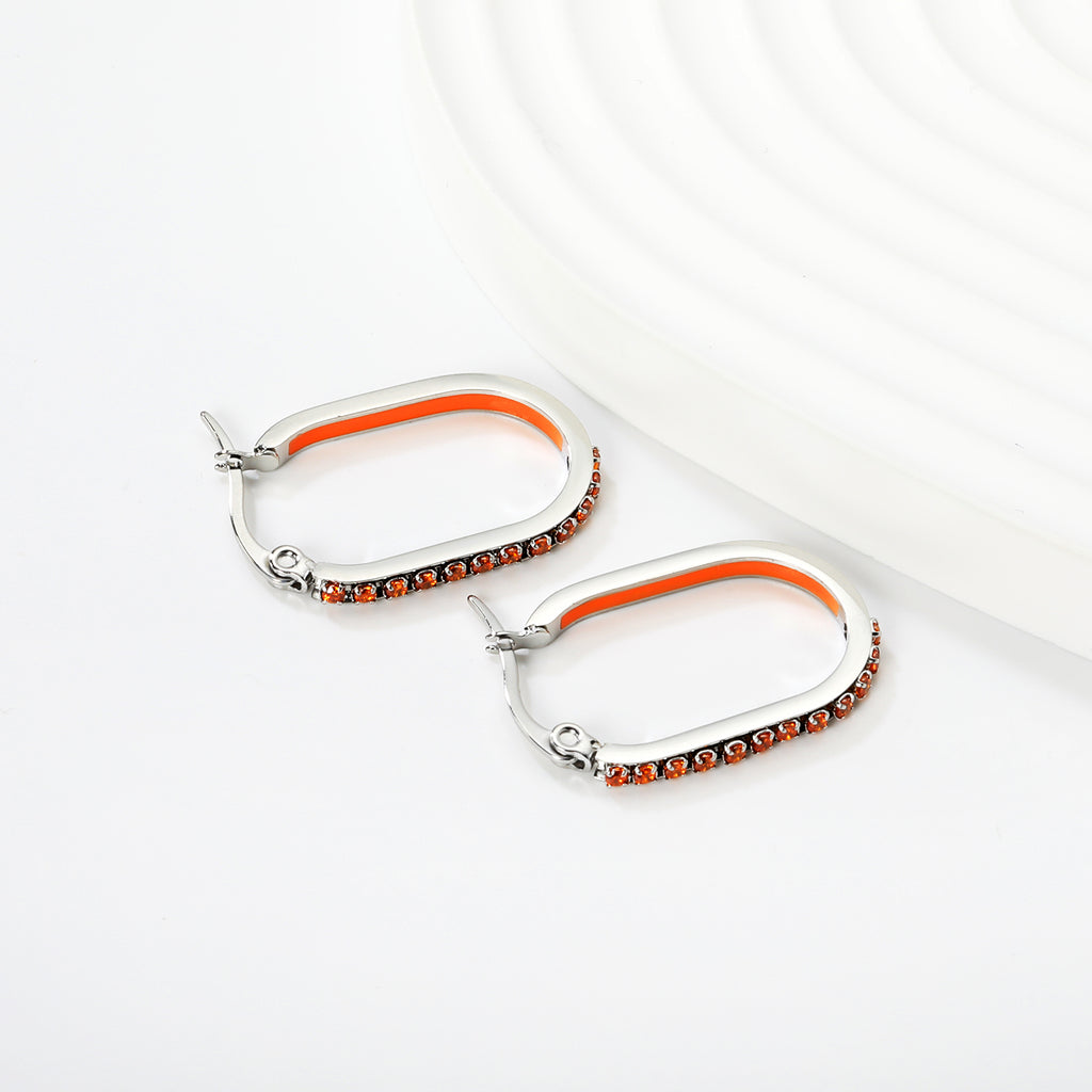 Elevate your everyday elegance with this striking oval-shaped geometric band earring. Measuring 2.26 x 22mm, the design features a sophisticated steel-colored base adorned with a vibrant spectrum of lab-created diamonds in white, purple, blue, pink, and orange hues. The secure ear hook closure ensures comfortable all-day wear, while the geometric pattern adds contemporary edge to any ensemble. Perfect for those who appreciate bold color play without compromising on refined craftsmanship.