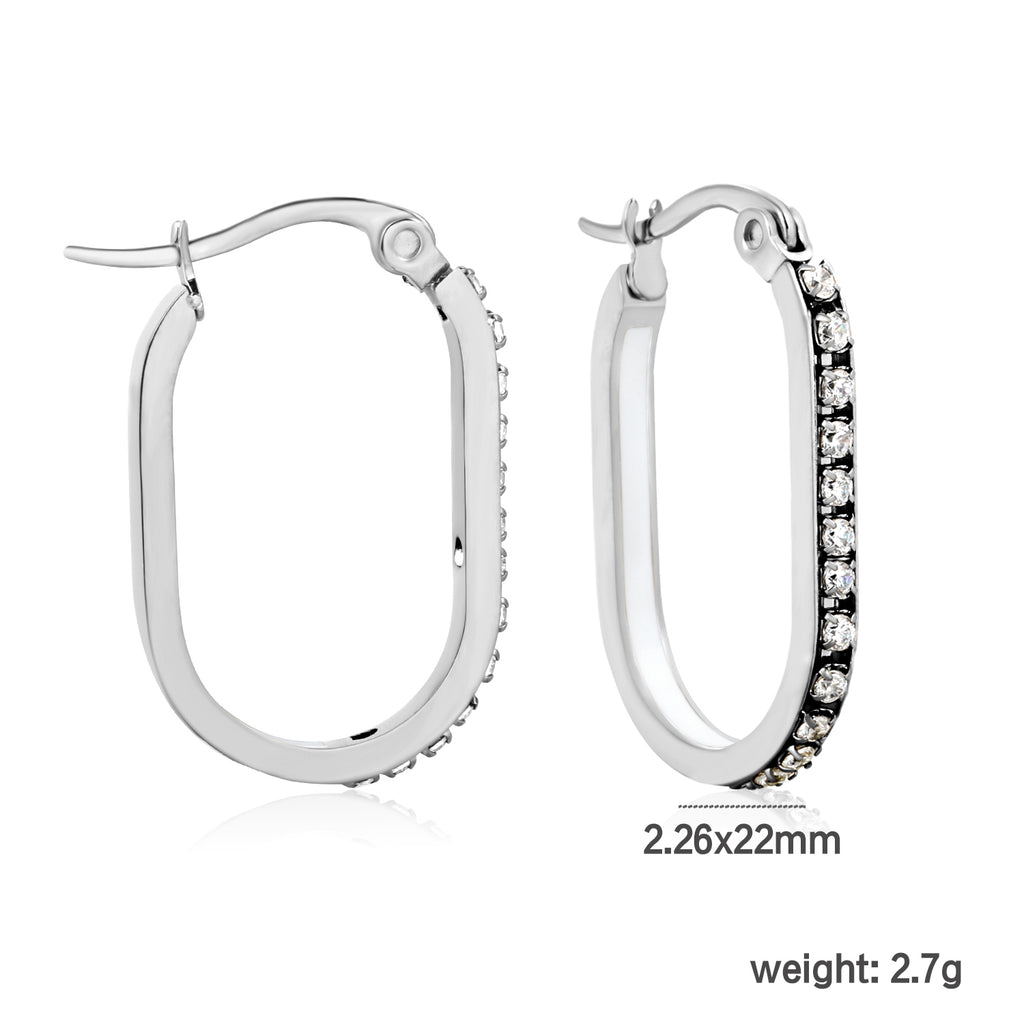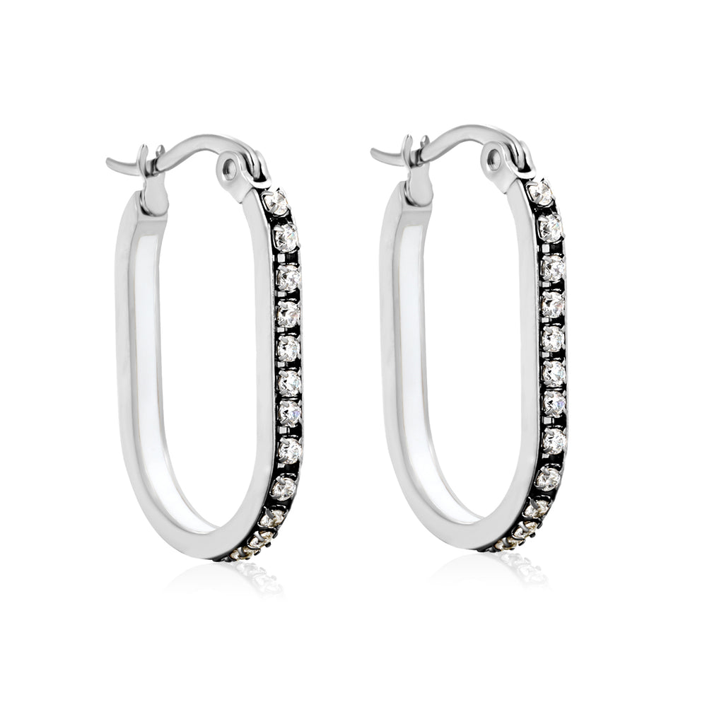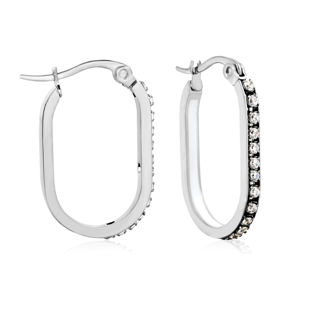 Elevate your everyday elegance with this striking oval-shaped geometric band earring. Measuring 2.26 x 22mm, the design features a sophisticated steel-colored base adorned with a vibrant spectrum of lab-created diamonds in white, purple, blue, pink, and orange hues. The secure ear hook closure ensures comfortable all-day wear, while the geometric pattern adds contemporary edge to any ensemble. Perfect for those who appreciate bold color play without compromising on refined craftsmanship.