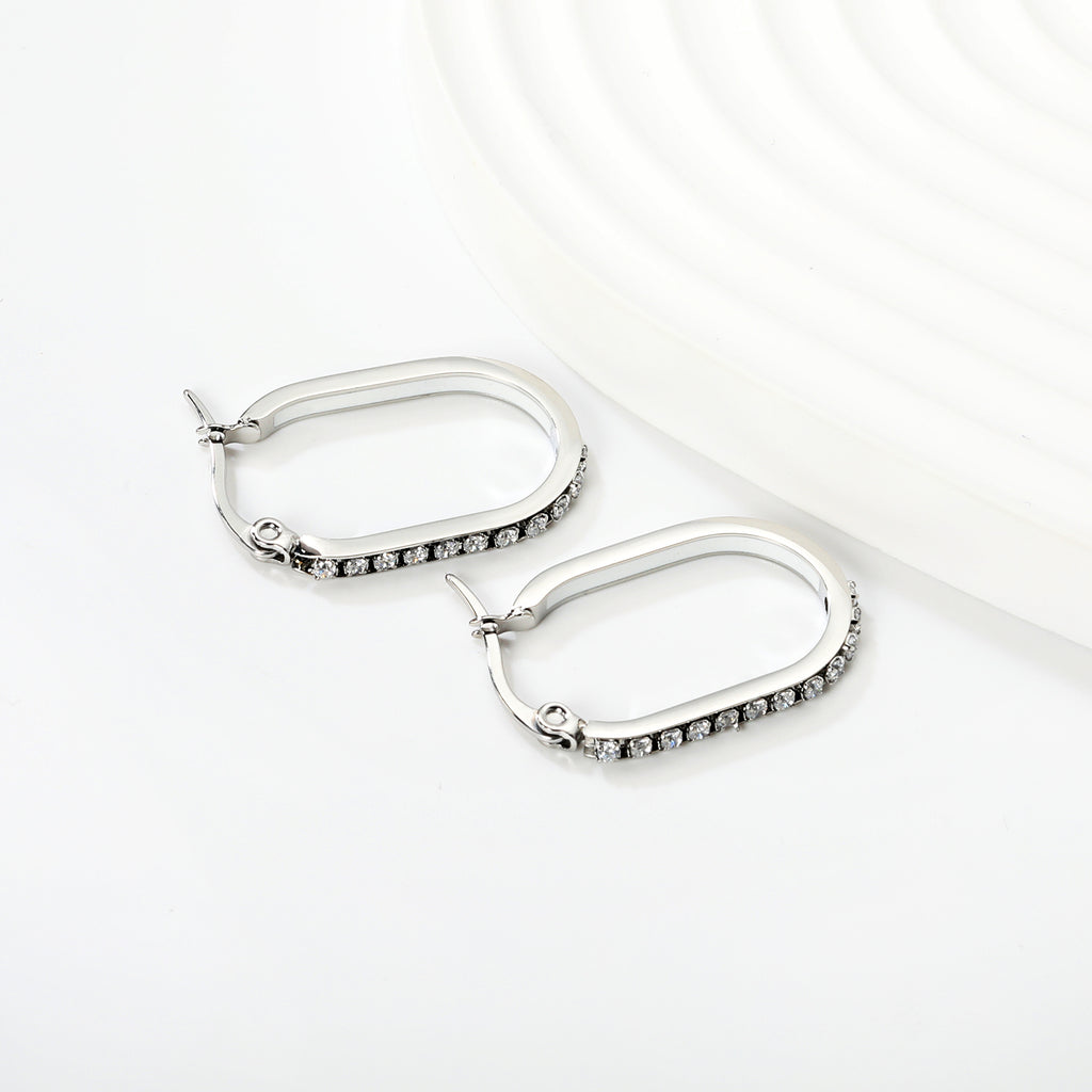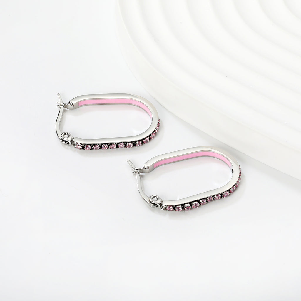 2.26 * 22mm oval-shaped geometric band with white/purple/blue/pink/orange diamonds, ear hooks, steel color
