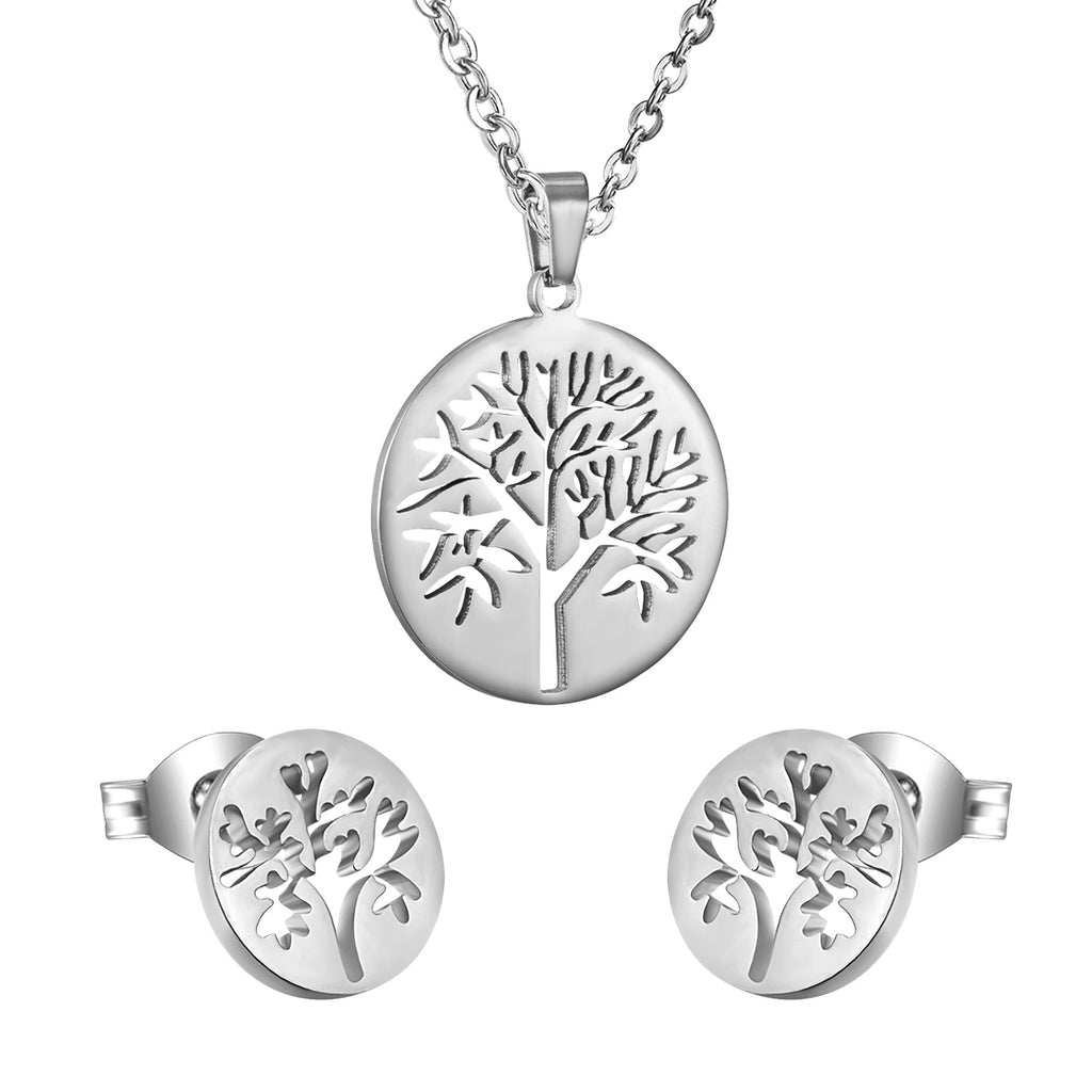 This gold/steel color jewelry set boasts a smooth surface and a unique hollow center in the shape of a tree. The intricate design adds a touch of elegance to any outfit. Crafted with high-quality materials, this set is sure to make a statement.
