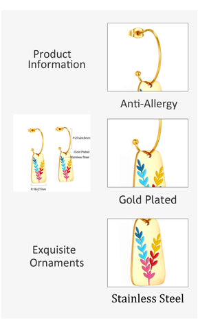 Pendientes De Medio Círculo Con Bola De Acero Con Figura De Hoja Ovalada De Colores Mixtos