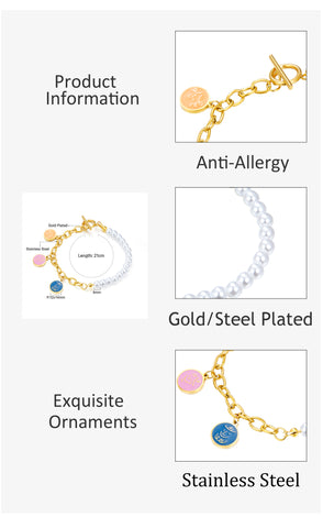 Pulsera suave de media perla con tres accesorios redondos de colores mezclados