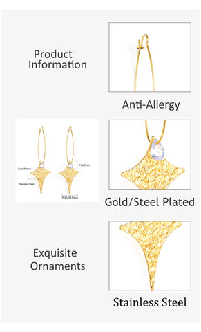 Pendientes chapados en oro de 18 quilates de acero inoxidable de moda para mujer