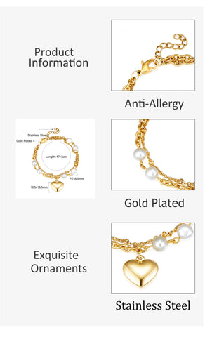 Accesorio En Forma De Corazón Con Pulsera Doble De 6 Perlas Blancas De Forma Especial