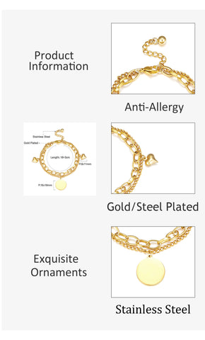 Pulsera Doble Redonda +2 Accesorios Corazón