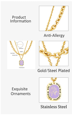 Accesorio Ovalado Con Collar De Doble Cadena Madre-bebé Morado