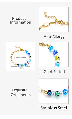 Pulsera Mitad De Acero Con Cadena Mitad Perlas Y Ojos Accesorios