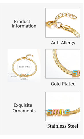 Pulsera accesoria con letras coloridas y sonrisa de acero inoxidable