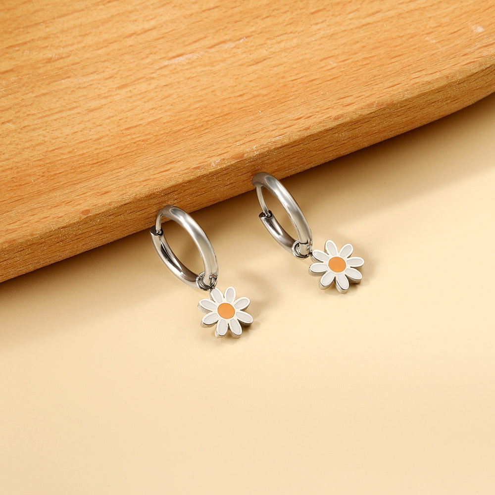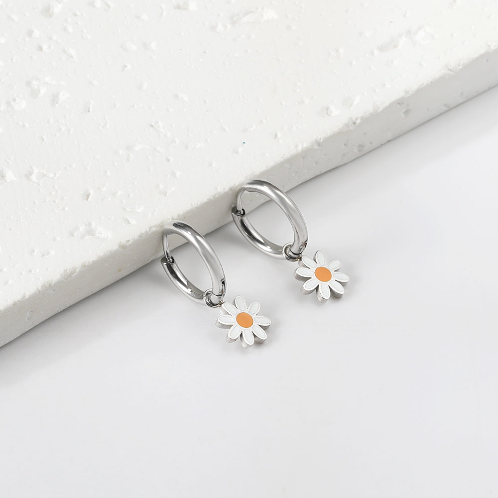 Delicate inner ear hooks crafted in durable stainless steel with gold-tone plating, designed for secure, comfortable wear. Each pair features a charming 8.4mm daisy charm with a vibrant orange center, adding a subtle botanical touch to your everyday look. The precise 2.0mm x 10mm hook dimensions ensure a refined fit that works seamlessly with various ear shapes. Perfect for those seeking understated elegance with a pop of color—ideal as a standalone piece or layered with other earrings for a curated aesthetic.