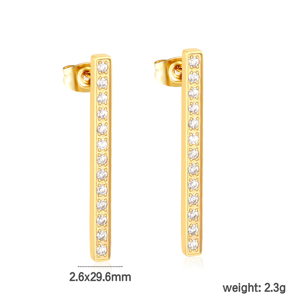 2.66*29.72mm Straight-Bar Cnc Diamond Stud Earrings, Gold